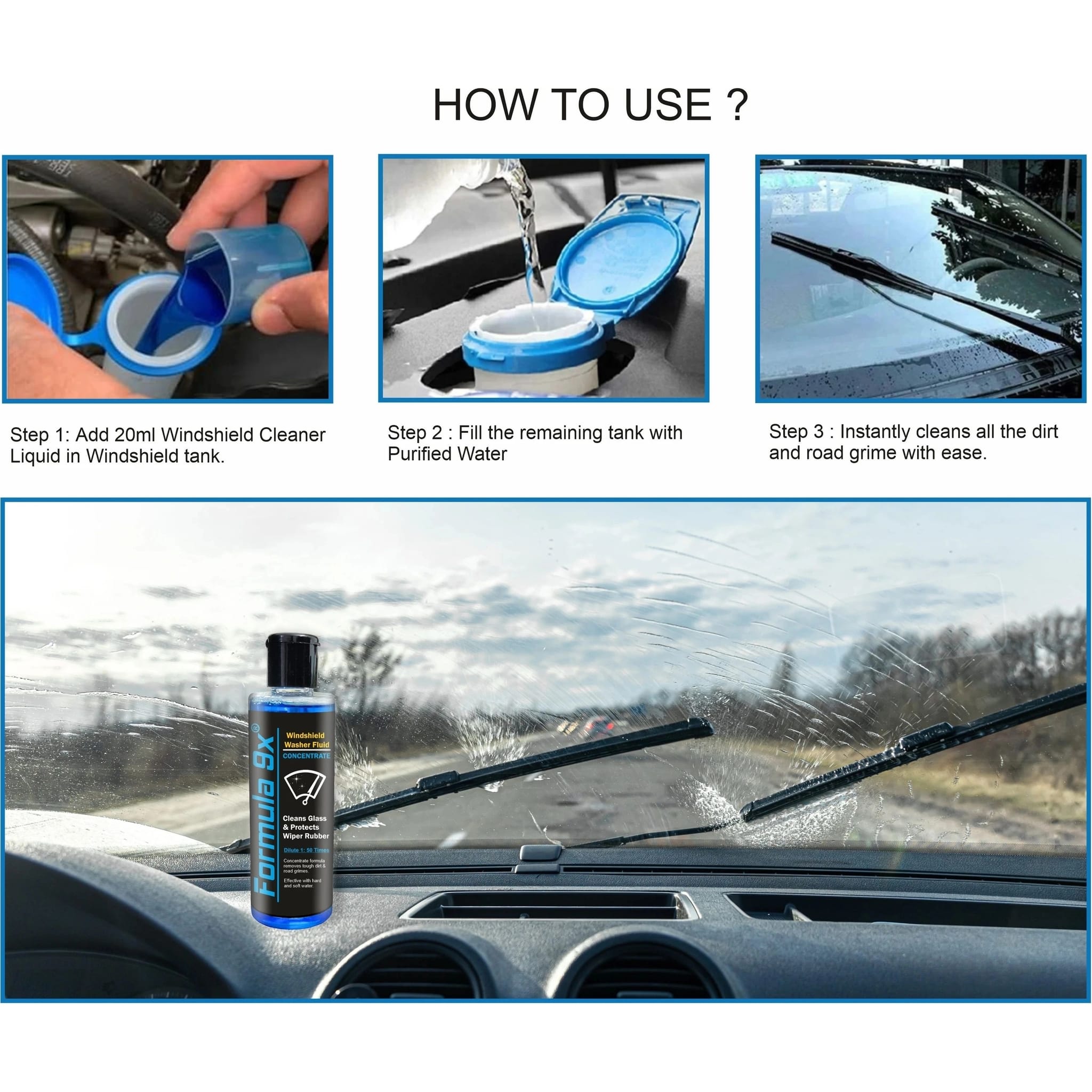 Streak-Free Finish: The cleaner is designed to leave a crystal-clear, streak-free finish, which is crucial for maintaining optimal visibility.